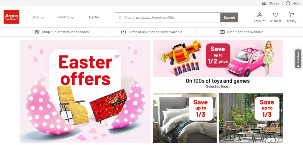 Argos is an online supermarket in the UK with a wide selection of products from clothing, toys, electronics, appliances…you name it. They have some great Easter promotions going on so its worth checking it out. Shop Argos Easter deals here.