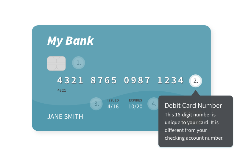It’s unique on each debit card issued by the bank and is different from your bank account number.